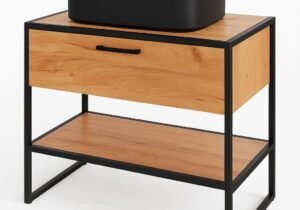 Mueble bajo mesada de baño en hierro negro y madera maciza | Valhalla Hym