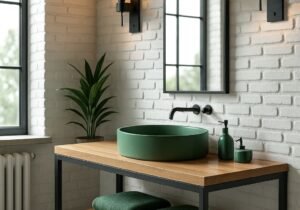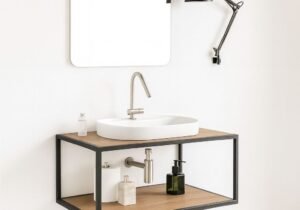 Estante flotante de hierro y madera para baño