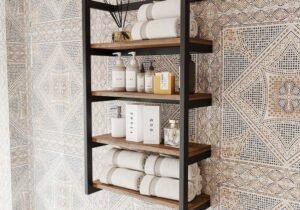 Estantería colgante de baño en hierro negro y madera x2 | Valhalla Hym