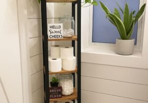 Estantería vertical de baño en hierro negro y madera maciza | Valhalla Hym