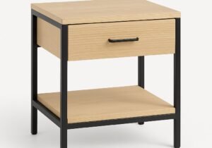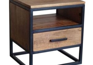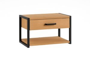 Mesa de luz de madera maciza y hierro negro con cajón y estante inferior | Valhalla Hym