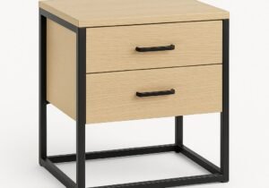 Mesa de luz de madera maciza y hierro negro con dos cajones | Valhalla Hym