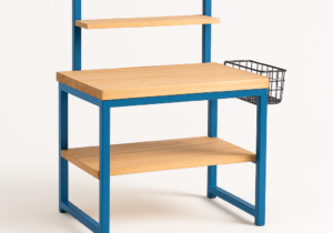 Escritorio infantil de madera con hierro azul y canasto lateral | Valhalla Hym
