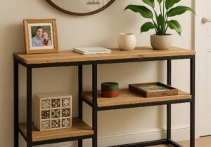 Recibidor de madera maciza con hierro negro y estante inferior | Valhalla Hym