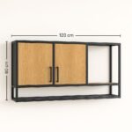 Aéreo de cocina 120 cm en hierro negro y madera con 2 puertas, espacio abierto y estante desplegado | Valhalla Hym