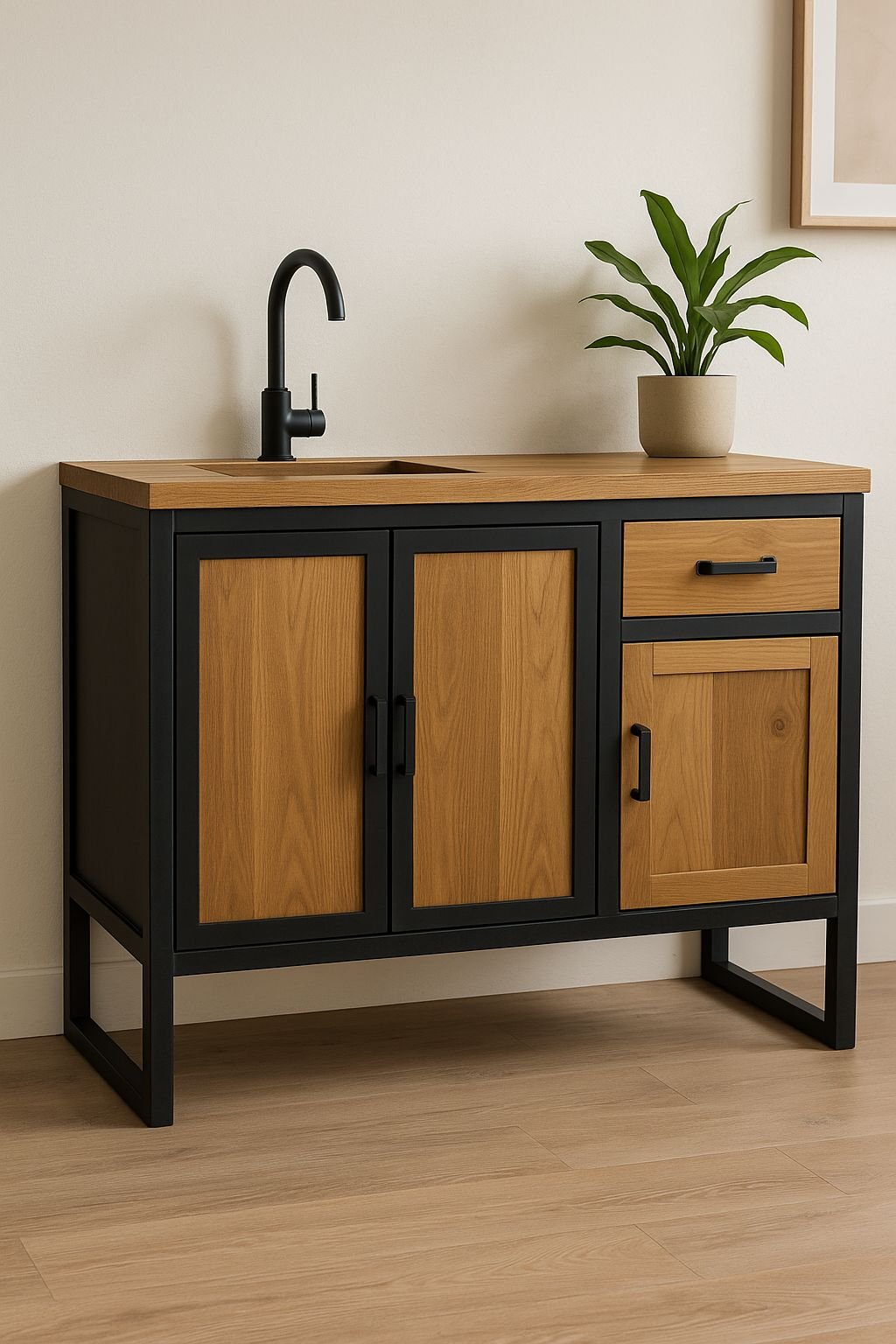 Nuestro bajo mesada industrial de hierro y madera combina practicidad, estilo y resistencia.