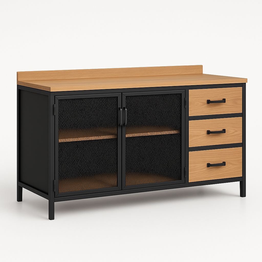 Este diseño práctico y robusto se adapta a múltiples ambientes, ofreciendo almacenamiento eficiente y un look moderno con carácter rústico.