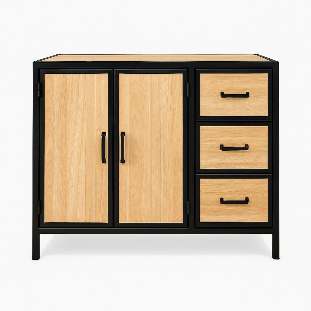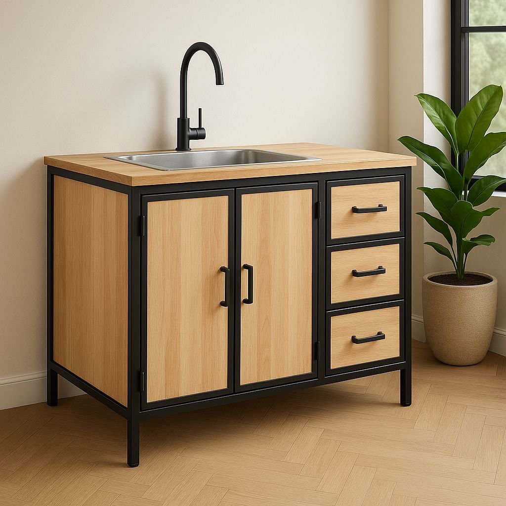 Bajo mesada de madera maciza con cajones y puertas en hierro | Valhalla Hym