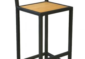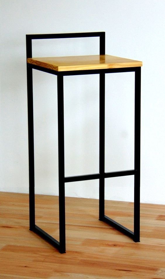 Taburete alto con estructura de hierro negro y asiento + respaldo en madera maciza. Diseño industrial, resistente y elegante, ideal para barras, islas o cocinas modernas.
