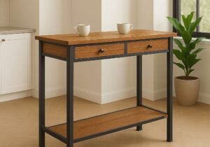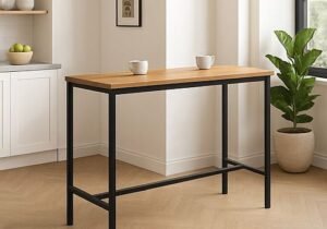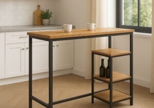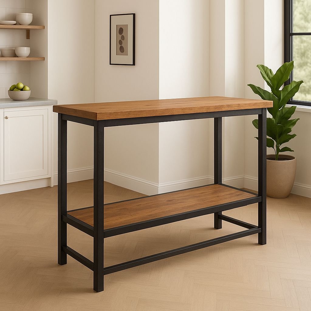Nuestro desayunador industrial con estante inferior combina practicidad y diseño en una sola pieza.