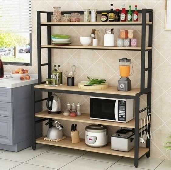 Con 5 estantes amplios y resistentes, ofrece gran capacidad de almacenamiento para vajilla, alimentos, especias, pequeños electrodomésticos o elementos decorativos.