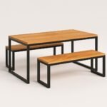 🍽️ Mesa de comedor de hierro y madera con bancos | Valhalla Hym