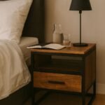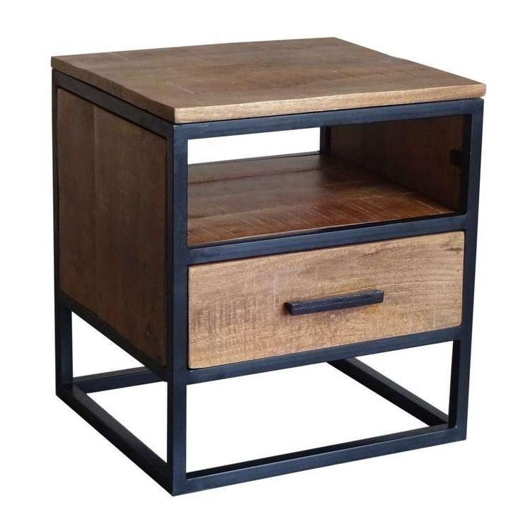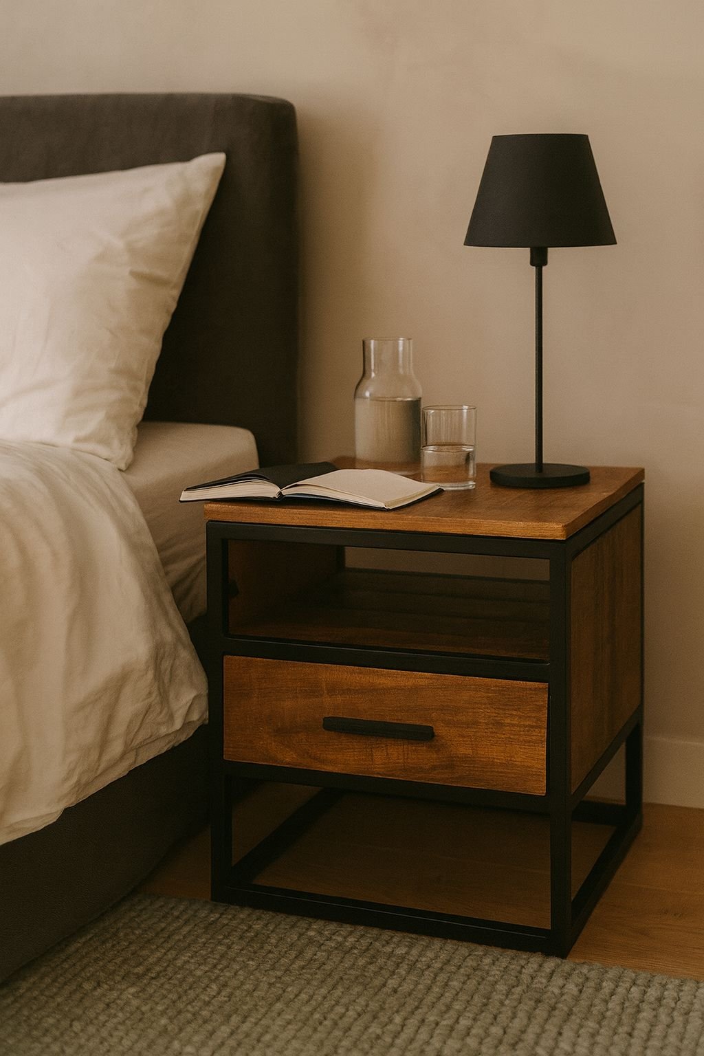 Nuestra mesa de luz es la combinación perfecta de diseño moderno e industrial con la calidez de la madera natural.