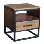 Cuenta con un cajón amplio para guardar lo esencial y un estante abierto que brinda espacio extra para libros, objetos decorativos o lo que quieras tener a mano. Su diseño versátil la convierte en una pieza ideal para dormitorios modernos, rústicos o industriales.