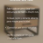 Fabricada en pino clear y estructura de hierro 20×20 mm, ofrece un mueble sólido, resistente y con gran estilo.