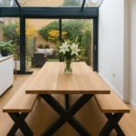 Su amplia superficie la hace ideal para salas de reuniones, comedores de gran capacidad o espacios de trabajo colaborativos.