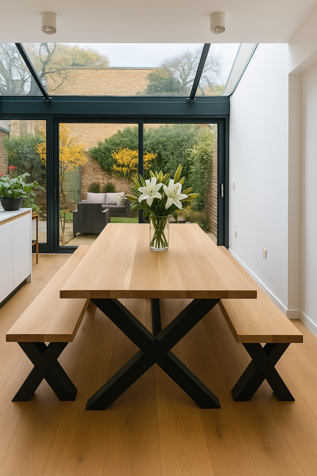 Nuestra mesa grande de madera maciza es perfecta para quienes buscan un mueble robusto, elegante y funcional.