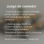 La estructura de hierro negro proporciona una base sólida y estable, mientras que la tapa de madera maciza, con vetas visibles y acabado natural, aporta calidez y sofisticación al ambiente.