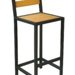 Taburete alto de hierro y madera con respaldo| estilo industrial